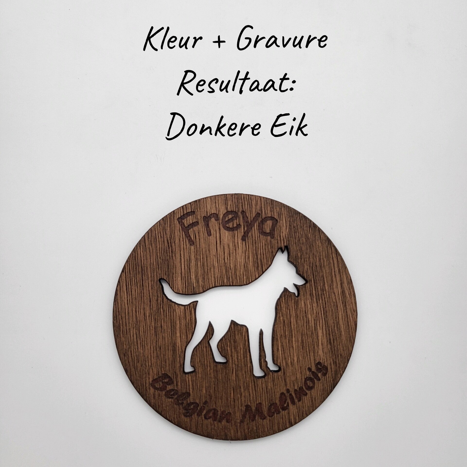 Een trouwringendoosje. Dit voorbeeld is gemaakt in de kleur "Donkere Eik" (wat vrij donker uitkomt).