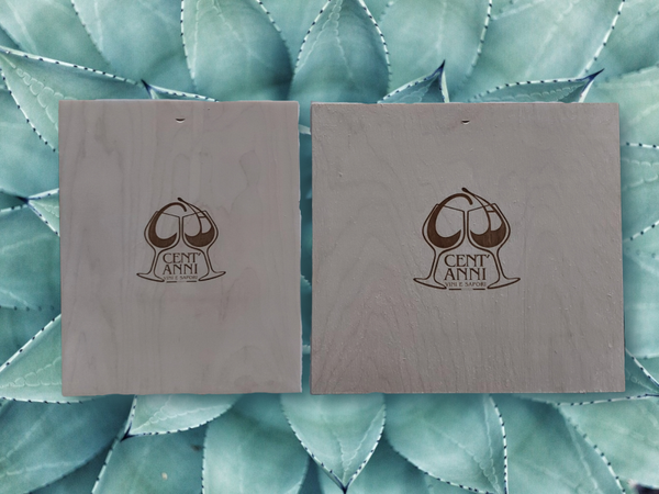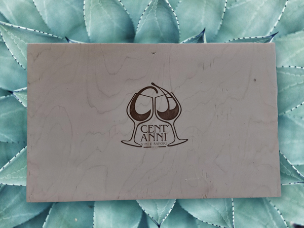 Foto-voorbeeld: een wijnhandelaar vroeg ons om zijn logo te laseren in de deksels van wijndozen die hij verkocht.