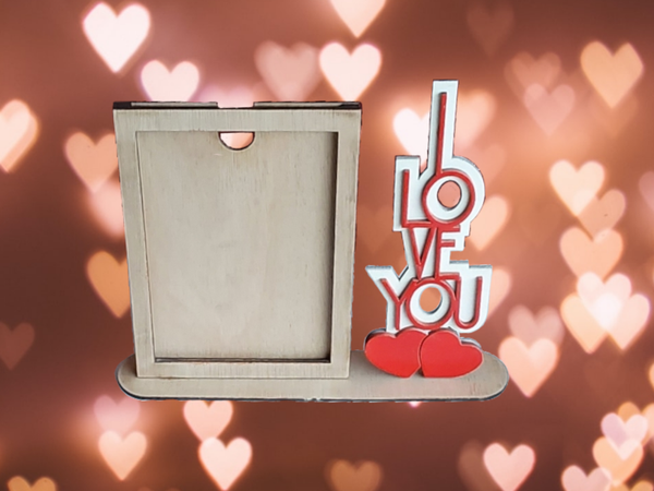 Houten fotokader voor een fysieke foto (10 x 15 cm), gelaserde foto of gesublimeerde (kleurprint) foto met geïntegreerd staandertje. Afmeting geheel: 22 x 19 cm.
