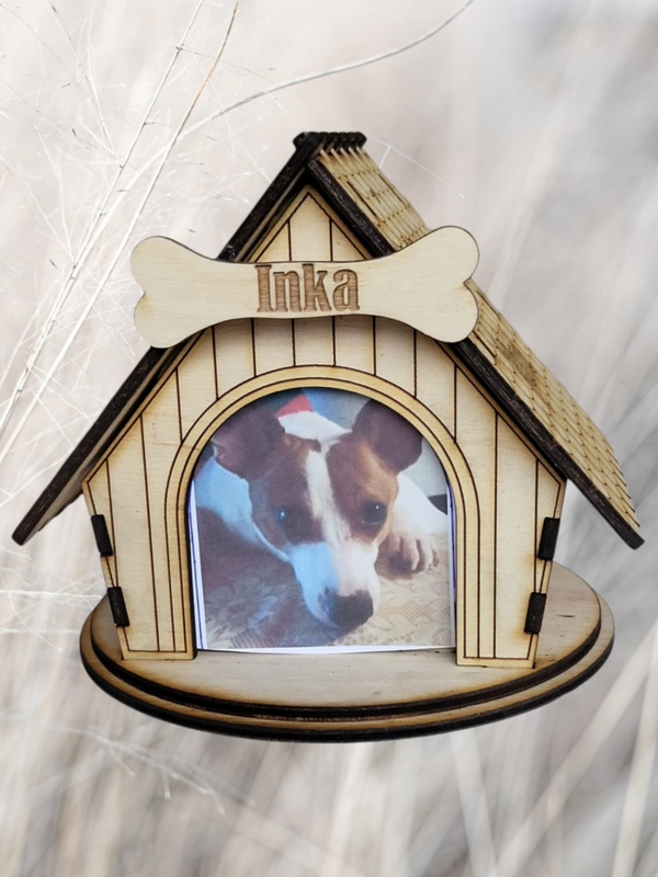 Je kan het doosje vullen met snoepjes voor je huisdier wanneer je het dak optilt. De foto van je huisdier kan in de deuropening gelaserd worden of je kan zelf een fysieke foto op maat knippen.