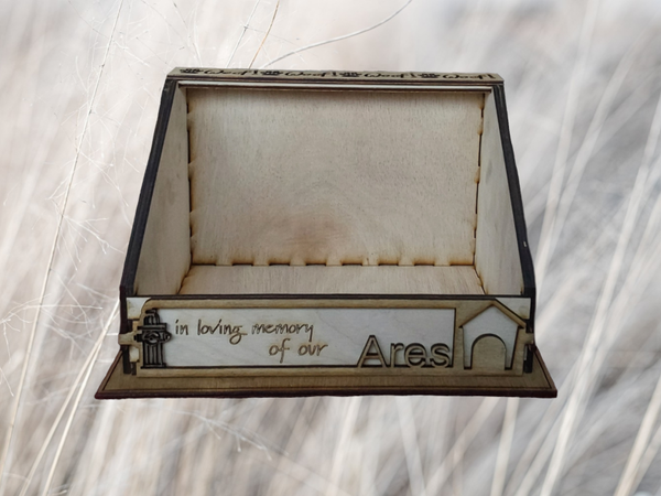 De voorkant vertoont een vaste zin "In loving memory of our" en gevolgde door de naam van het dier, die dan weer in reliëf is uitgesneden.