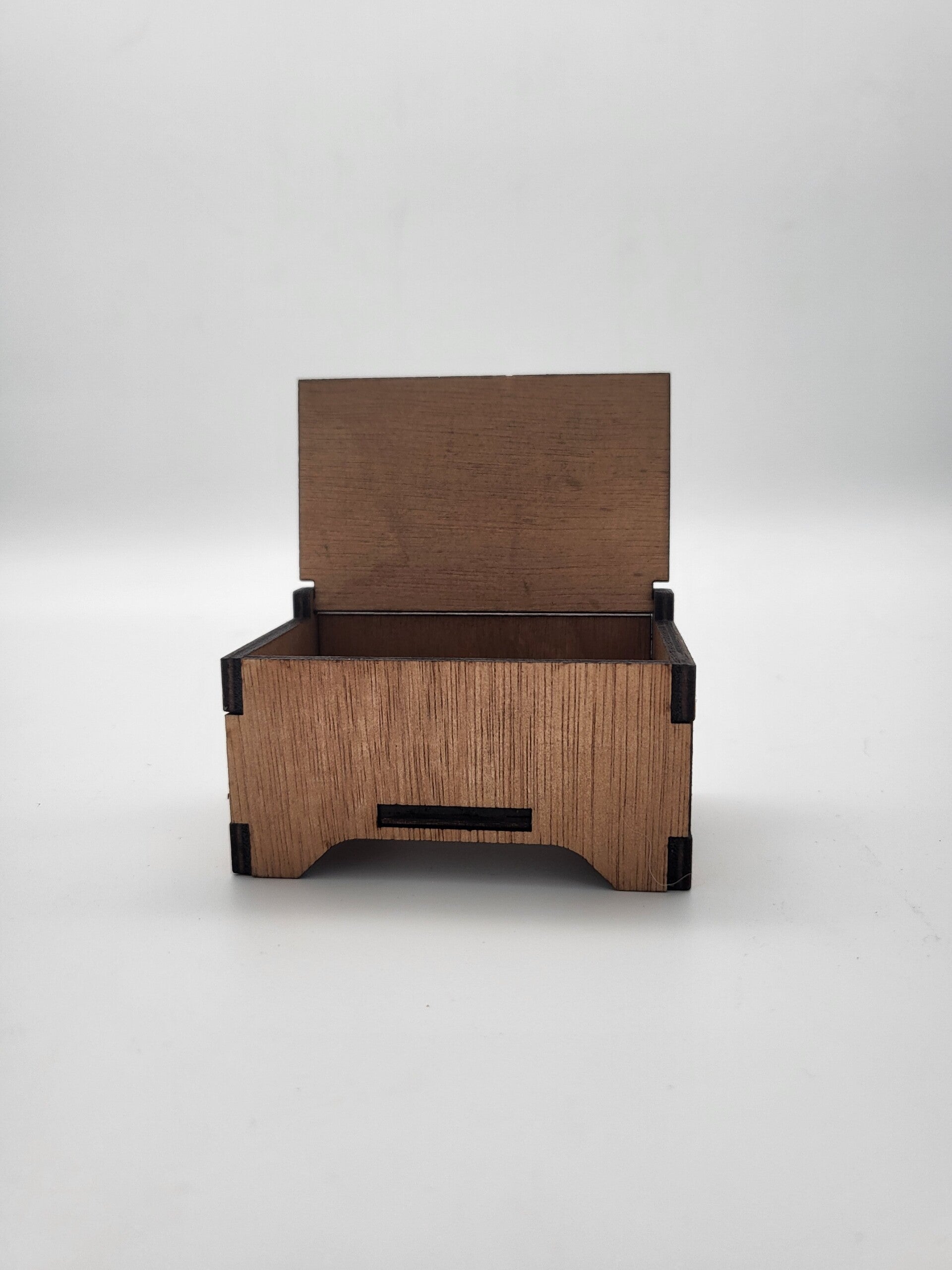 Het deksel kan versierd worden met een gegraveerde eenvoudige afbeelding. Op de voorzijde kan je nog een tekstje of naam/namen laten graveren.